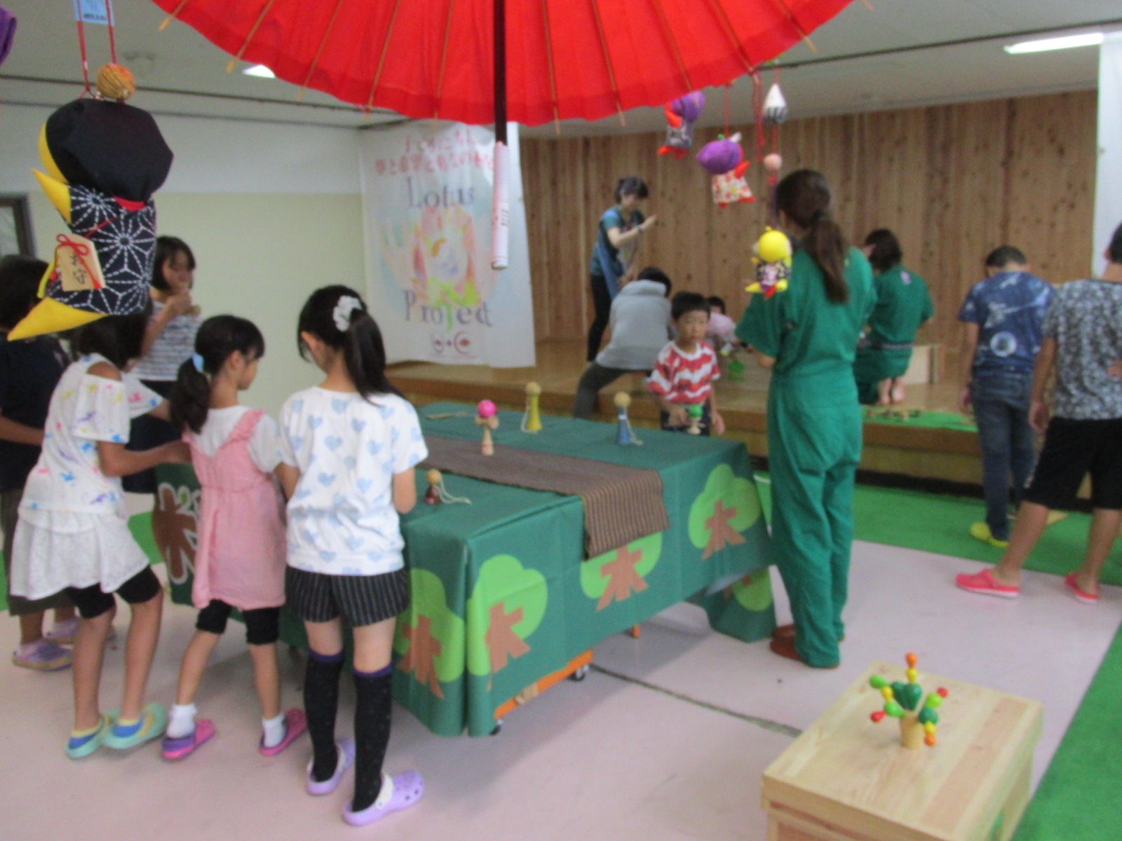 9月8日(土)にNPO法人Lotus(ロータス)さんにお越しいただき、おもちゃ遊びや工作をおこないました。