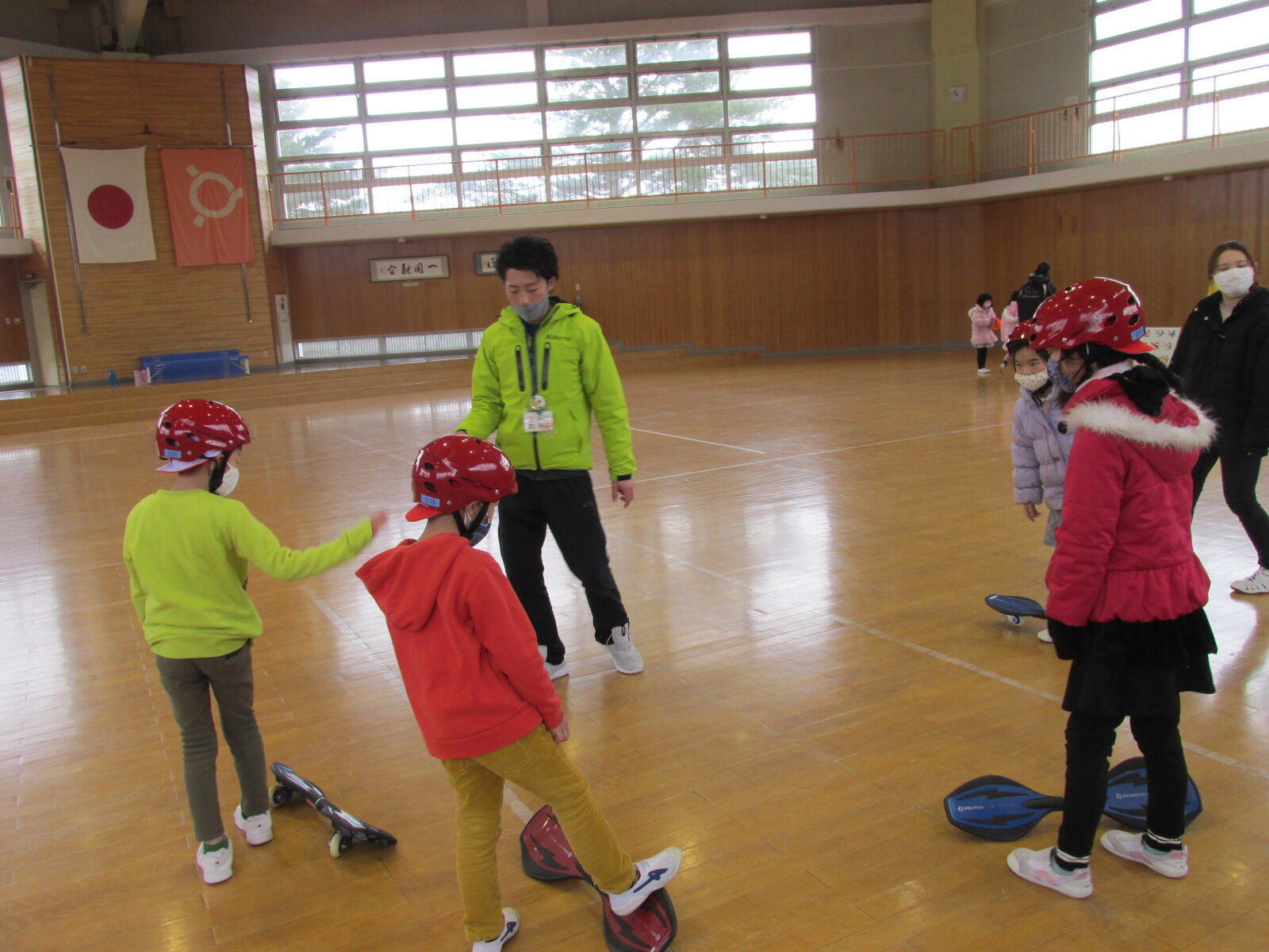 あいにく、天気が悪く外遊びはできませんでしたが、体育館でたくさん体を動かしたり、工作を楽しむことができました。