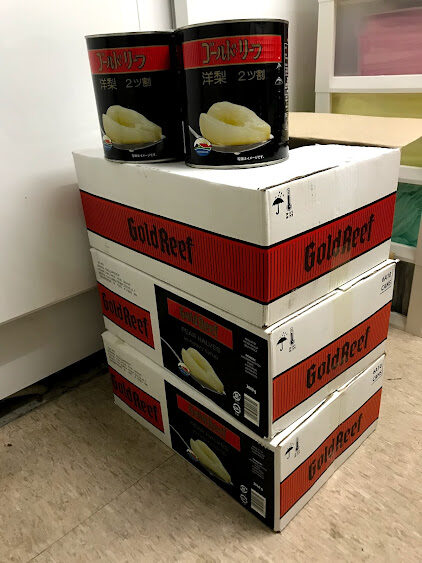 9月9日、会津児童園後援会監事の大野様より、「洋ナシ」の巨大缶詰6個入を3箱頂戴しました。ありがとうございます。