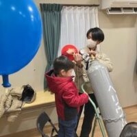 はじめは怖がりながら風船を作っている子どもも、会津ガスの職員さんの優しい