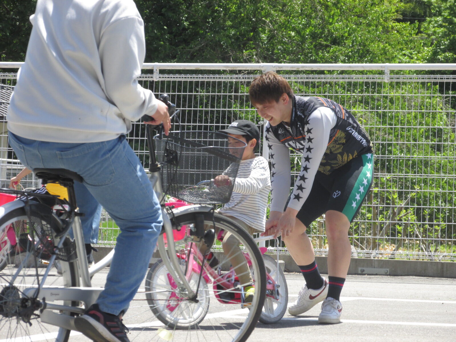 児童園の子ども達は、プロの競輪選手による自転車の練習で、児童園の子ども達はすいすい乗れるようになりました。児童園から最寄り駅までの国道もコーチしていただき、危険個所の確認も併せて行っていただきました。