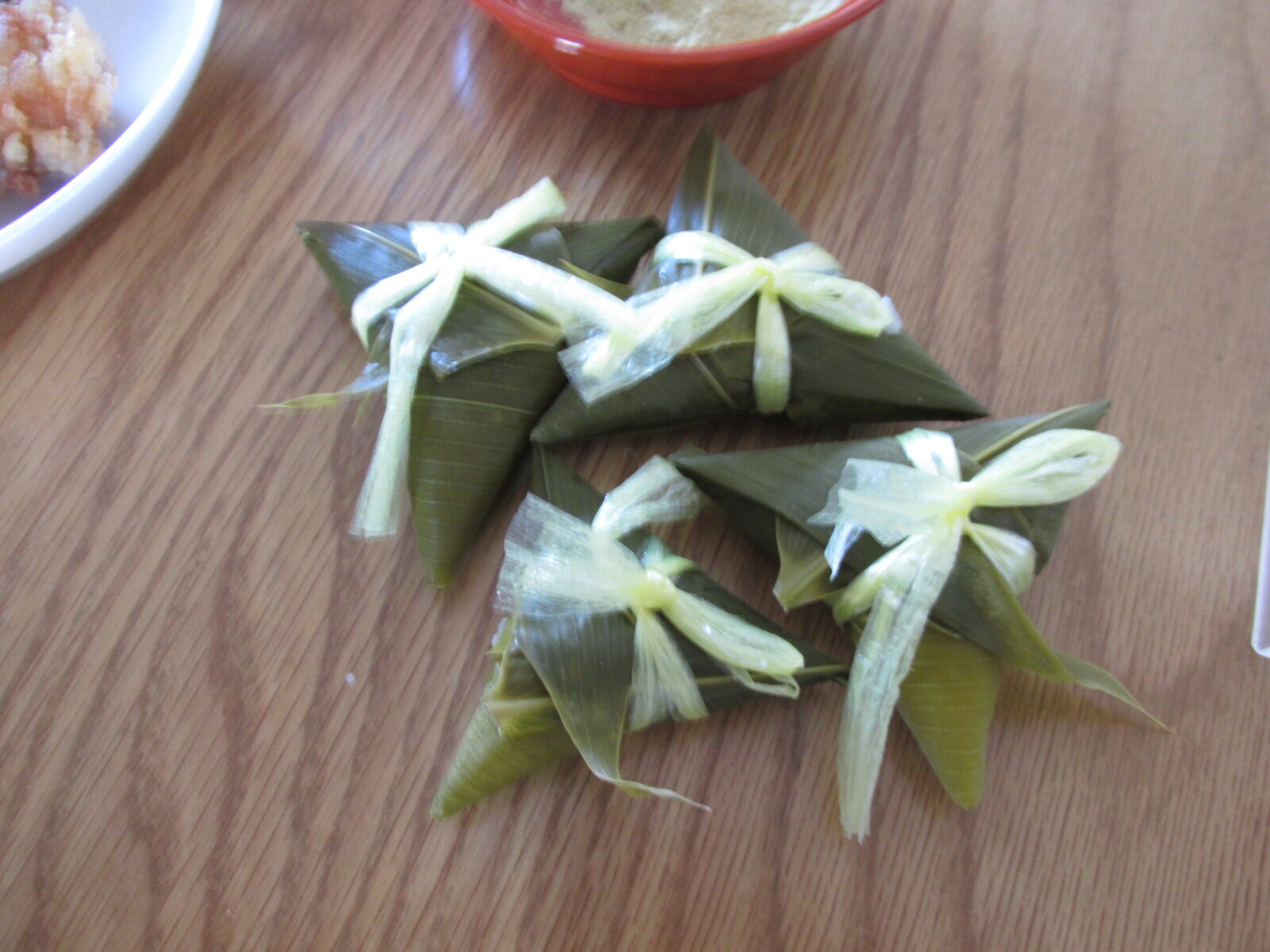 会津児童園の敷地内で事前に採っていた笹の葉で笹巻きができると子どもたちは「あっこれ前に僕たちが採った葉っぱだ!」「これが笹巻きっていうんだ!」ととても大喜びでした😊