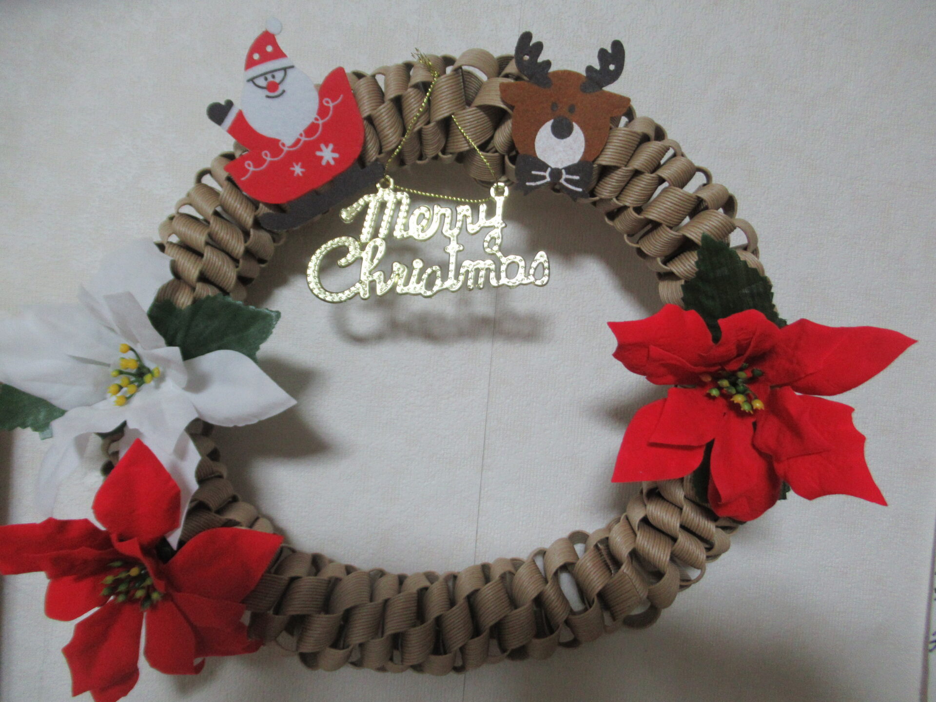 公民館で開かれた『わらべ塾』でリースの編み方を教わり、ホームに帰ってからリースを仕上げました😊