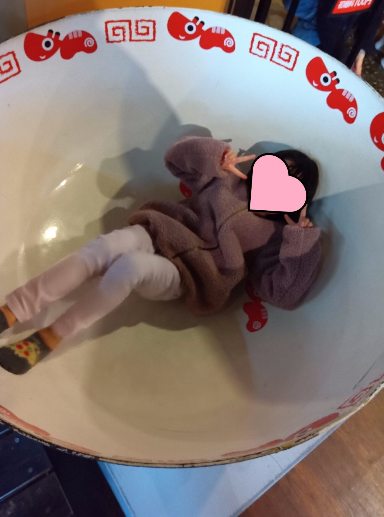 代わる代わるに大きなラーメン鉢に入り、楽しみながらポーズを撮っていました📹🤩