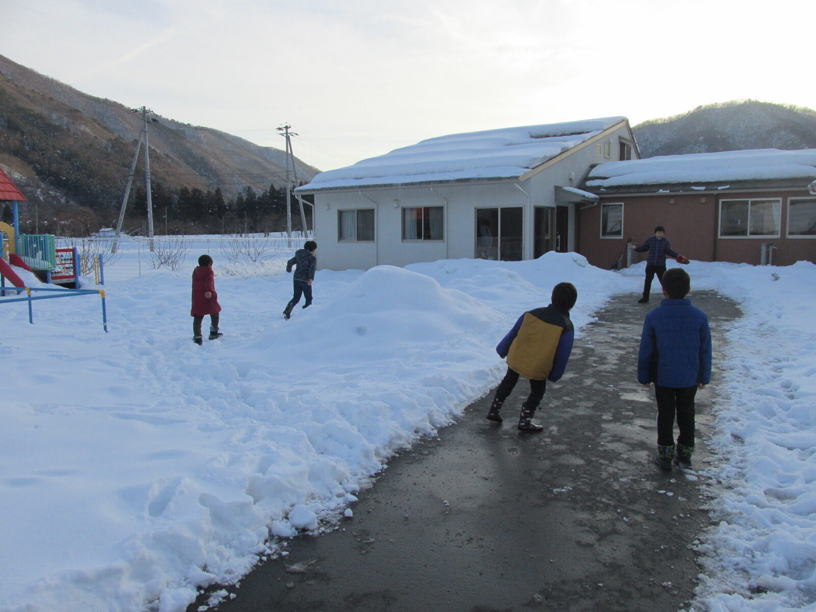 子どもは風の子、元気な子! 2025年1月20日 休日、今日も寒空の中、元気に走り回る子どもたち。 小学3年生の男の子が「お兄さん(職員)、上見て」。空を見上げると、長く伸びた雲。 職員「すごいね。なが~い、雲だね」。男子「あっ、わかった!今年は巳年だからだ!」