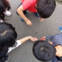みんなカマキリに興味深々で触ったり、虫がちょっぴり怖い児童はそっと見たりしていました。手に乗せてみると「なんかチクチクする~」「カマキリが歩くとくすぐったい!」「カマキリの目って近くで見るとこんなに大きいだね」とみんな笑顔で話していました。そんな子どもたちの会話にほっこりしました。🥰
