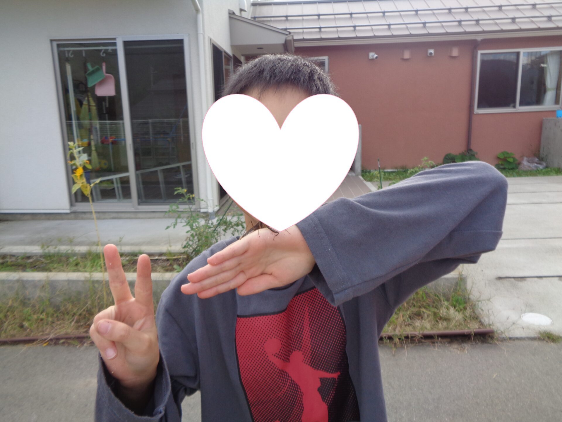 森ホームの子どもたちは元気に外で遊んでいます!いつも通り玄関を出るとそこには一匹のカマキリがいました🤗
