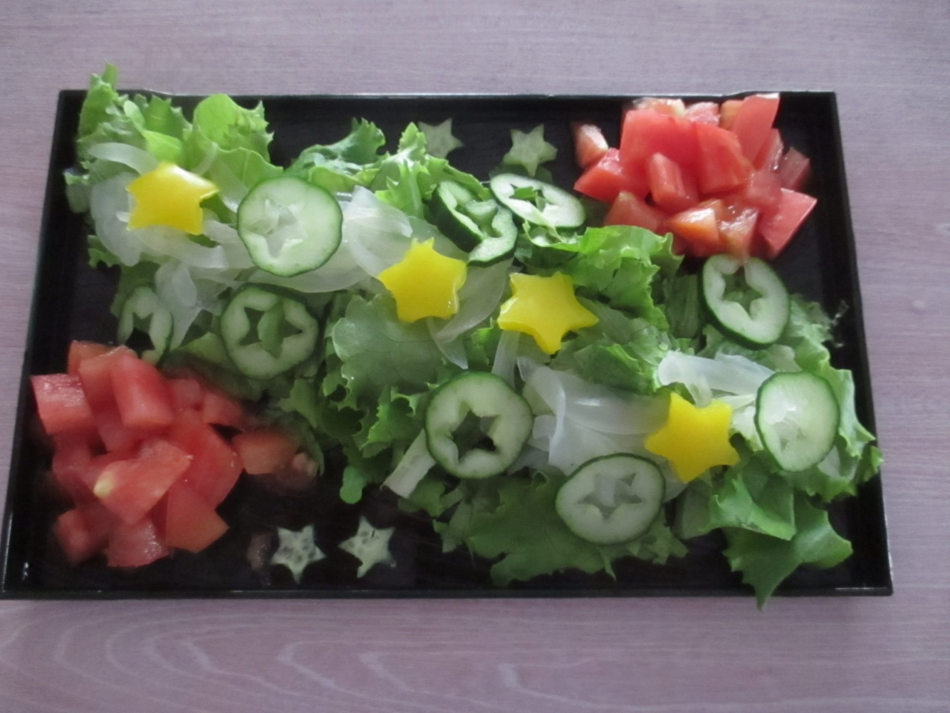 黄色の星はパプリカで型取り、サラダは天の川に見立てています。
