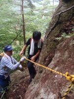 全員無事に難所を通り抜け、拝殿に到着し、手を合わせて参拝してからおやつをいただきました。