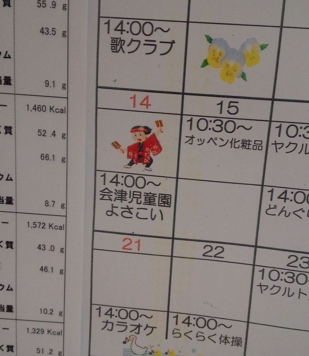 そして4枚目、施設の予定表にしっかり載せていただきました。