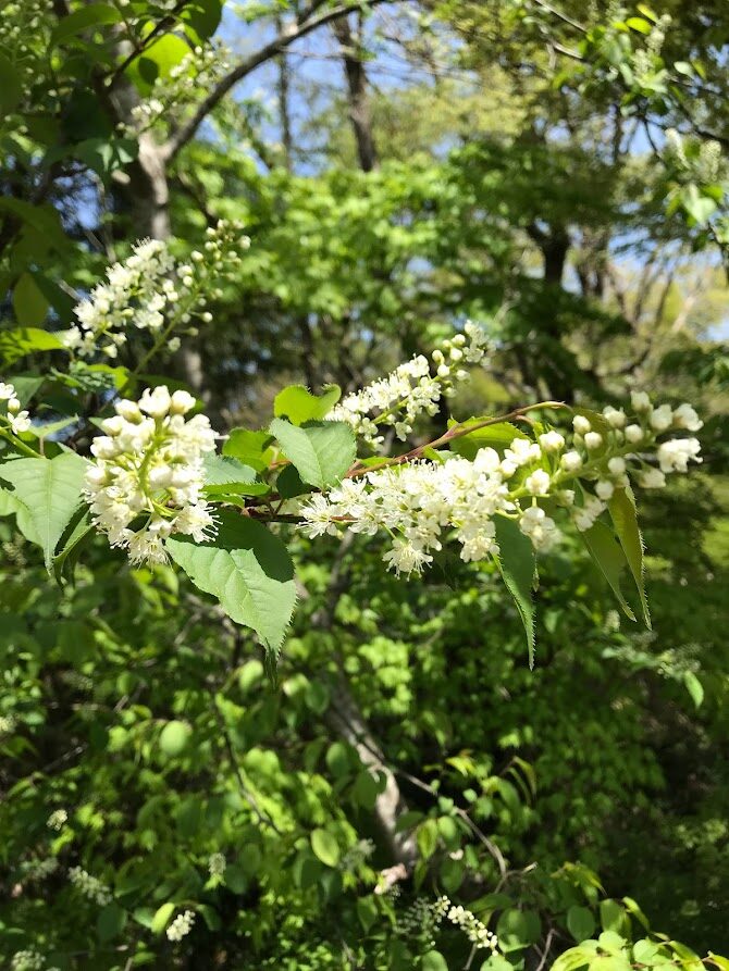 今年のお花見は早々に終わりましたが、ちょっと変わった「ウワミズザクラ」が満開です。熟した実は杏仁の香りがします。
