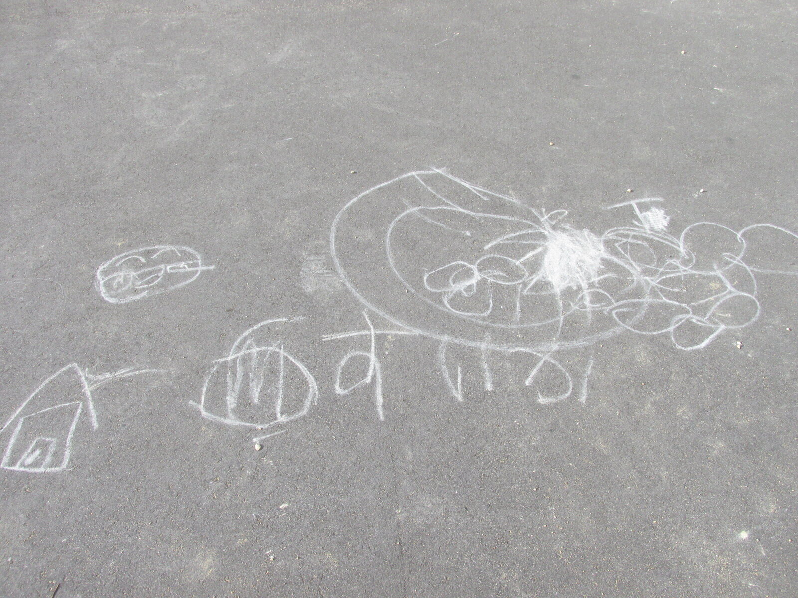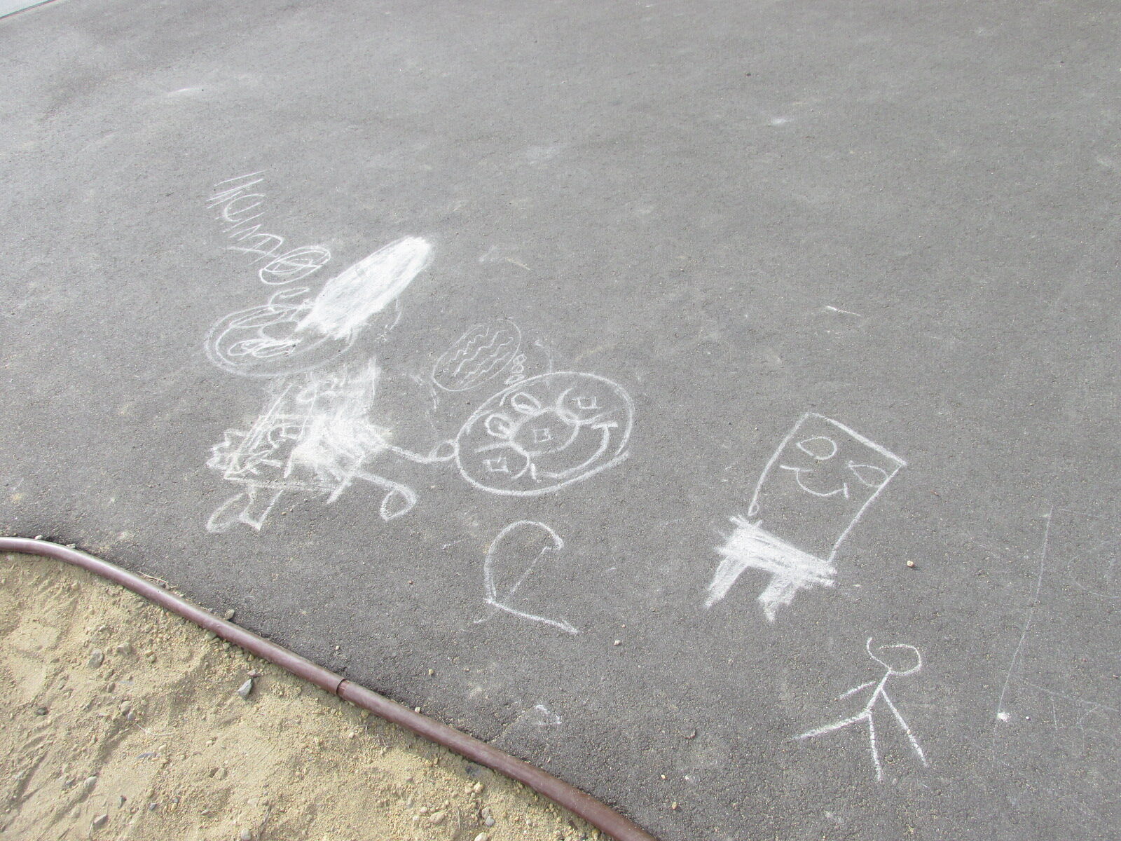 遊び場(遊具)のすぐ傍のアスファルトに書かれた絵。