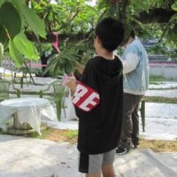 七夕なので、願いごとを短冊にそれぞれ書きました。「アイスが食べたい」や将来のことなどさまざまなお願いを書き出していました。