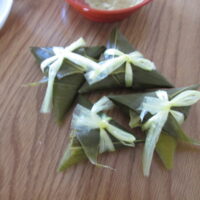 会津児童園の敷地内で事前に採っていた笹の葉で笹巻きができると子どもたちは「あっこれ前に僕たちが採った葉っぱだ!」「これが笹巻きっていうんだ!」ととても大喜びでした😊